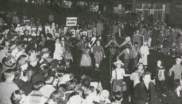 By the 1930’s, the holiday began to take the secular shape it has now as a community-centered holiday. Parades were still a part of the celebration, but the “play parties” expanded to encompass civic centers rather than just neighborhoods. With most religious and scary aspects of the holiday censored and or eliminated by uncaring activist groups, the holiday was now much “safer” for kids. By the 1950’s, the holiday became focused entirely on them (thanks in part to the Post-WWII Baby Boom). With the focus on children, the “play parties” most often associated with Halloween moved back to neighborhood homes (so they could drink in peace). “Trick-or-treating,” which still consisted of asking complete strangers to give you something just because you asked for it, seemed to be the only unaffected aspect of the holiday. However, the violence and vandalism persisted on October 30th – “Devil’s Night” – well into the ’70’s, creating a combative environment in cities like Detroit. However, the ’80’s did a good job of stymying that sort of terror in our country.