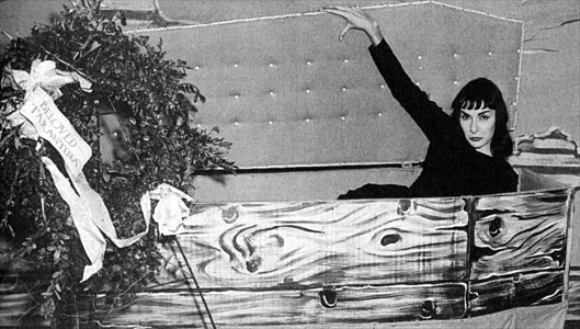 The station immediately responded to his popularity, giving Ghoulardi three shows a week (!), and offering Ernie the chance to continue to work unimpeded on all of these shows. He developed a segment called Parma Place – a take off on the very popular Peyton Place – to skewer the boring people in the suburbs, and would fill time when the movies fell short with other routines and oddities, largely improvised. He would use the equipment used to superimpose sports graphics onto broadcasts, and insert himself into the terrible movies, running away from the monster, or interacting with the other characters by responding with jokes to their dialog. His connections with Tim Conway and the popularity of Ghoulardi led to a pilot for a show in Hollywood to be developed (!!), unheard of for regional hosts like Ernie. However, Ernie refused to compromise when it came to what the character of Ghoulardi was like, and his in-your-face attitude, inappropriate jokes and jabs full of insults, sex (and what he called “ethnic humor”) bombed in Hollywood, about the time he pulled out fire-crackers to use on the set. It seemed that Ohio was going to be the extent of his fame.