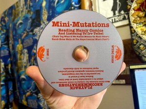 The new album by Mini-Mutations! Professionally duplicated CDs provided by kunaki.com, these discs contain new music and live performances not available elsewhere, and now you can get it on this continuous audio presentation that deals with some of the thorniest issues in our world. Home-made packaging contains your own mutated money, a chance to join Professor Schwartzwelder’s “Mini-Mutations Civil Disobedience 101” Club, and a card that proves your disc was inspected by #34, the most well-regarded inspector money can buy. Limited quantities, not available digitally. Get yours today!