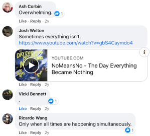 Lot’s of ways to engage, but, really, it’s just an effort to keep in touch. And that’s the important thing. If I’m able to make contact with each of you, in some small way, then this was all a success. While I do still believe in the power of internet tools, I’m just REALLY suspect of most social media anymore. The mindlessly scrolling feels weird, and doesn’t feel like communication or interaction anymore, but more like a by-product of some kind of hypnosis. I’ve had more boons come my way, and more opportunities open up, as a direct result of this e-mail list, and I hear from people I missed and never talked to on social media. So… something tells me this is a little better for me, at least for now. I do miss my friends I used to chat with often in those spaces. But I feel like I still interact with those people in some other way… so I don’t think I’m missing much.