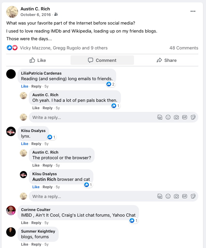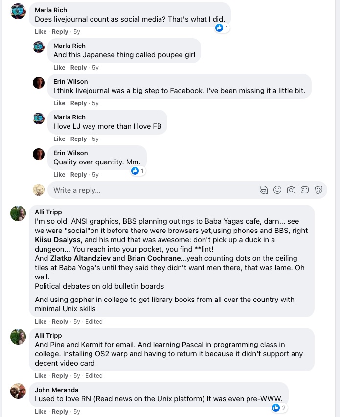 I guess this was what it was like before FB. No one really read each other’s blogs, either.