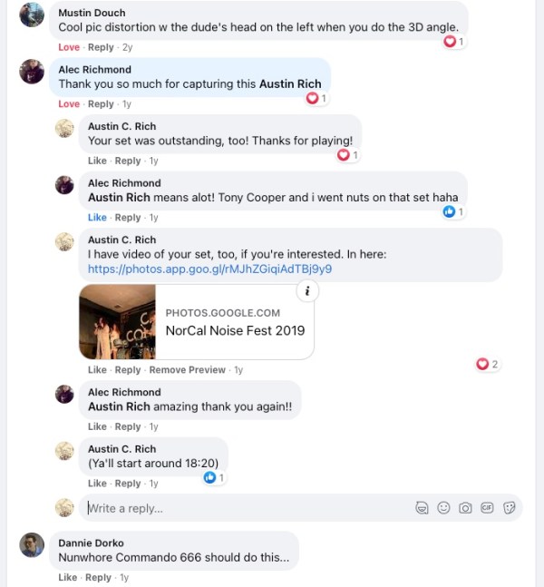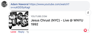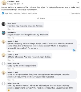 As time moves on, I will try to reduce my relationship with FB (and all social media) tremendously. My hope is to keep it for music, and even then, largely for communication. I like making art, and keeping in touch with my friends. But the psychic cost of using FB the way I was using it needs to come to an end. I don’t need that in my life. I need to remove myself from the picture, as best I can.
