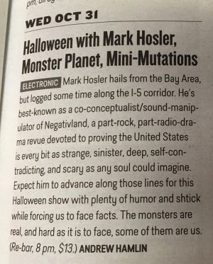 Doing last minute prep for this show tonight. I’m not gonna lie; this tour has been an incredible experience, and it has all been building to this show, on such an excellent day, too! Buddy Runyan is kicking things off, then Mini-Mutations, Mark Hosler, and a closing set by Monster Planet. This will be THE party to attend tonight, and you will not want to miss this show. I assume I’ll see you there?