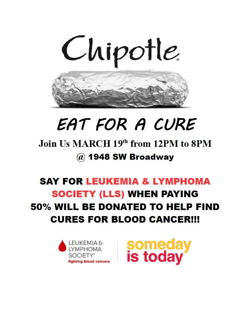 On Mark 19th, From Noon to 8 PM, 50% of the sales will be donated to Team Puddlestompers, who are raising money for LLS. You’ll be wanting something to eat, so this is a great opportunity to cure hunger, and donate money to help cure bigger problems in this world.