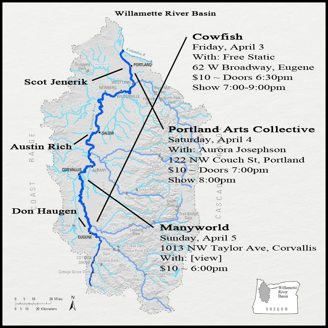 3 April: Live Performance with Scot Jenerik, Don Haugen & Free Static at The Cowfish in Eugene, OR at 7 PM. FB Event Listing.