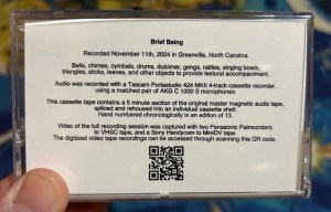 New Group! I don’t think they even have played that much, and they don’t have many recordings yet. But this one is excellent! Each tape contains only a small slice of a longer performance by Brief Being, and the original full recording no longer exists. There is some video that you can watch, but really, this artifact of a recording session is truly something special. A wonderful addition to the group this year.